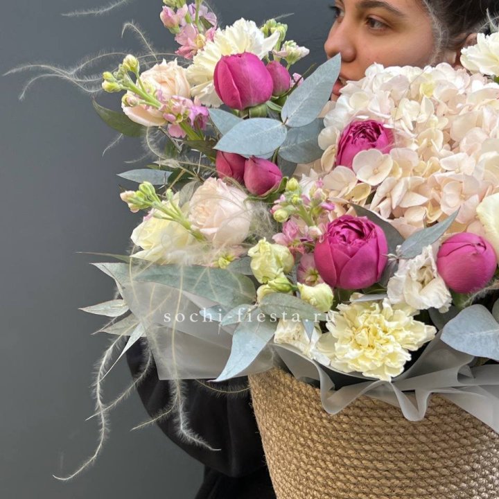 Корзина кустовых пионовидных роз