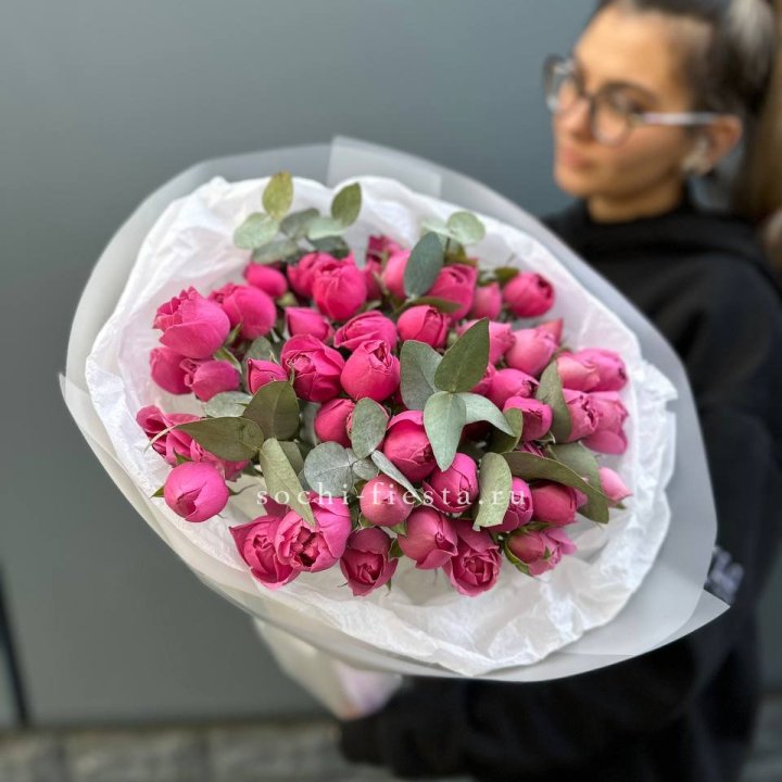101 кустовая роза с эвкалиптом