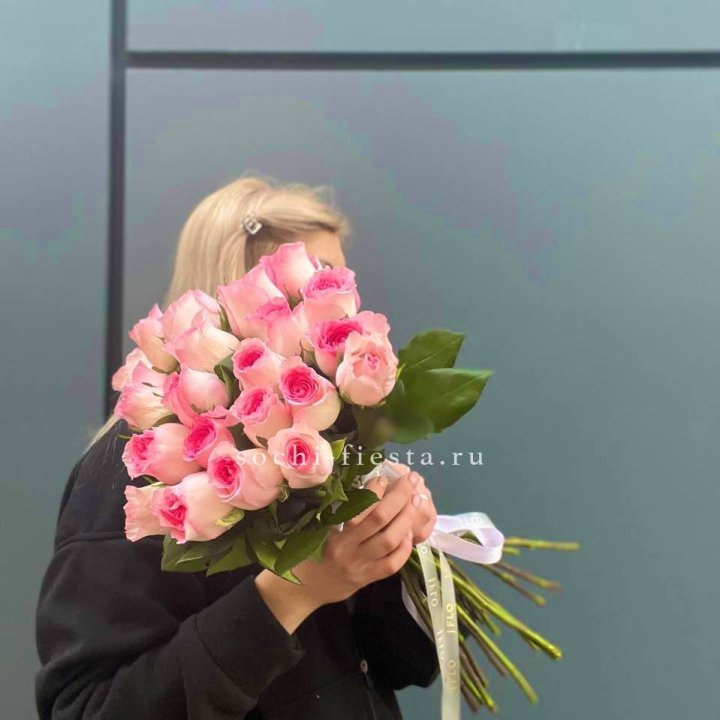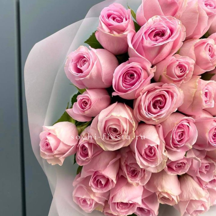 25 высоких розовых роз