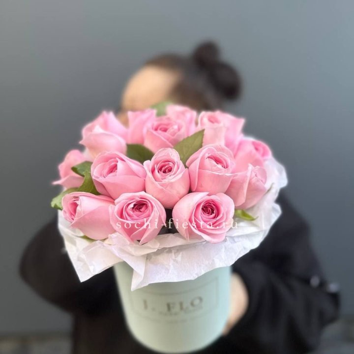 17 розовых роз в цилиндре