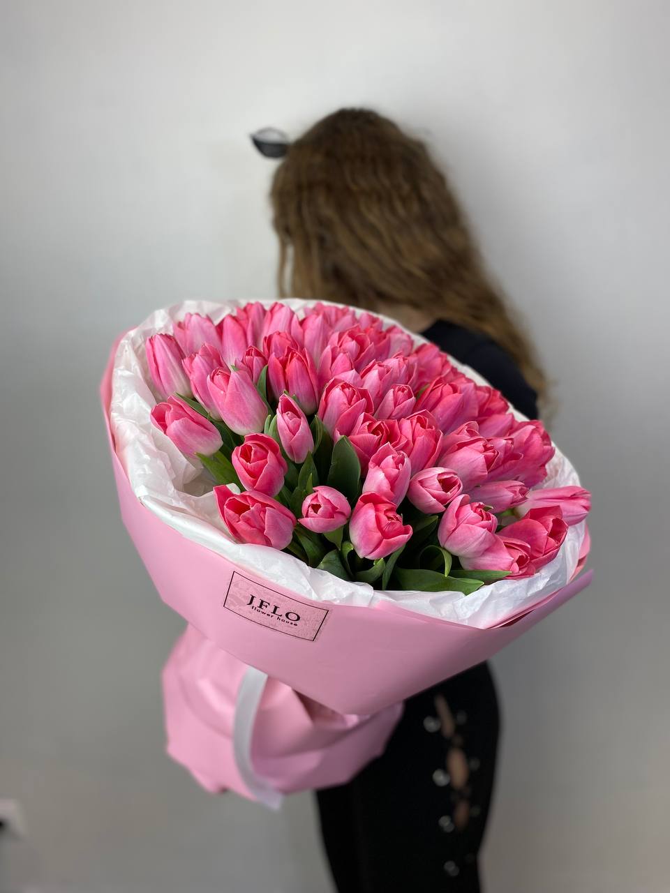 Букет из пятидесяти одного розового тюльпана держит форму благодаря плотной сборке и остается свежим долгое время. Практичное решение для тех, кто ценит естественную красоту без лишнего декора.