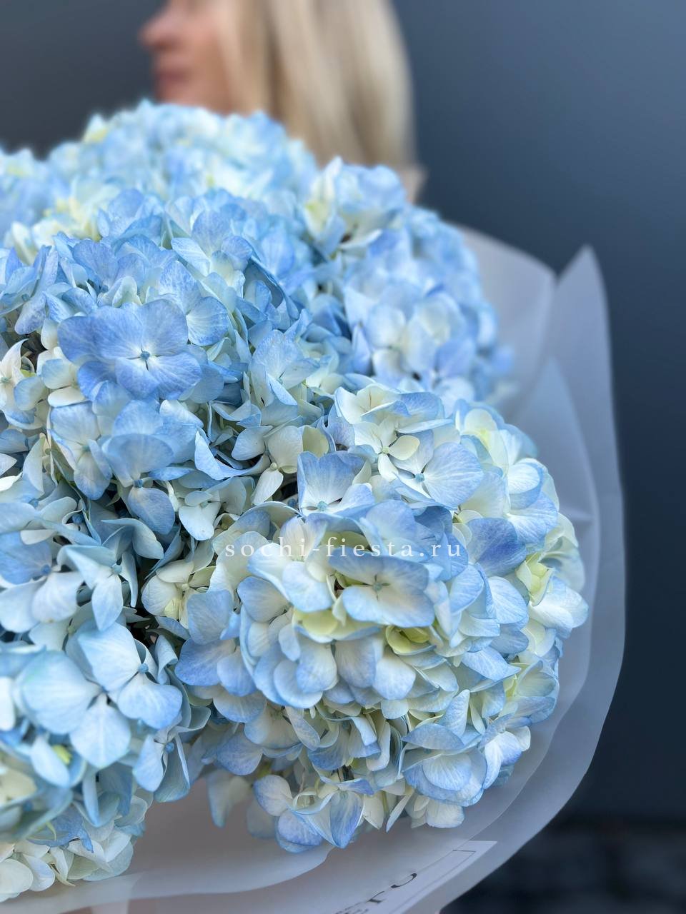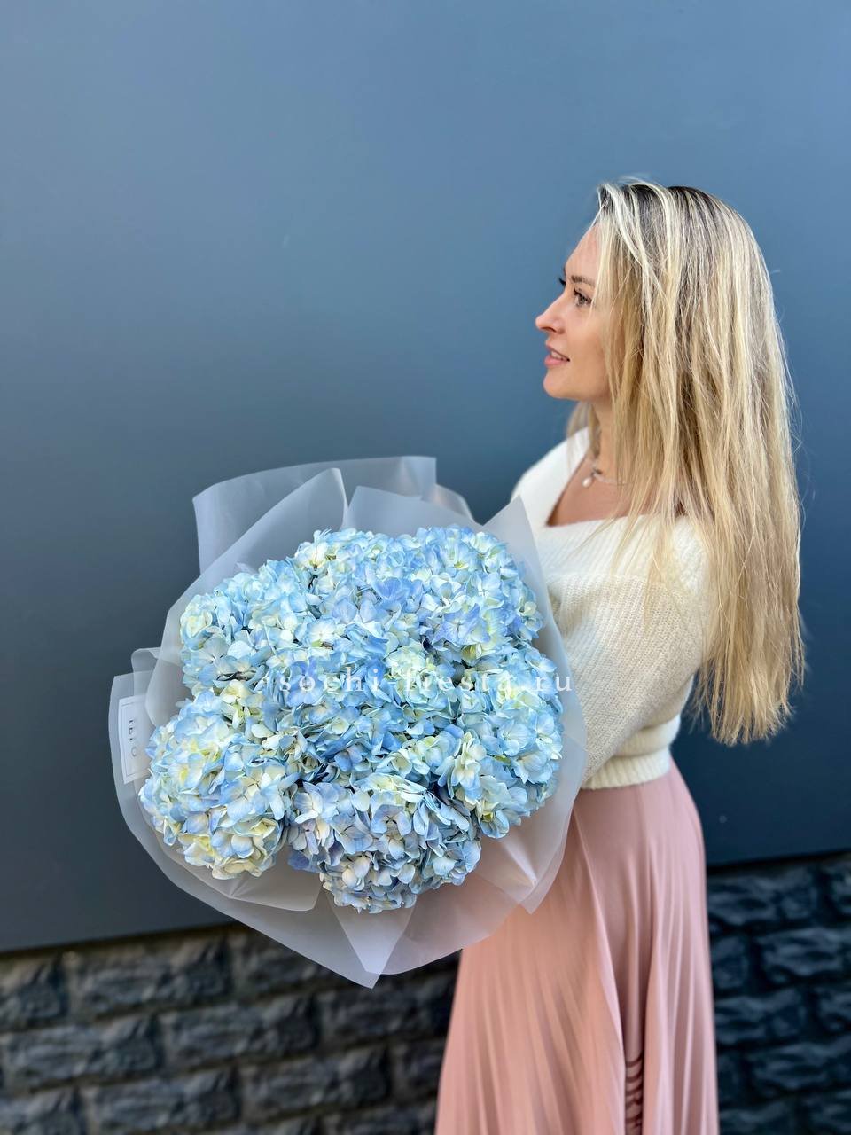 гортензия - 7 шт., лента, дизайнерская упаковка.