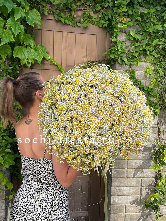 ромашки (танацетум камилла) - 101 веток, лента, упаковка.