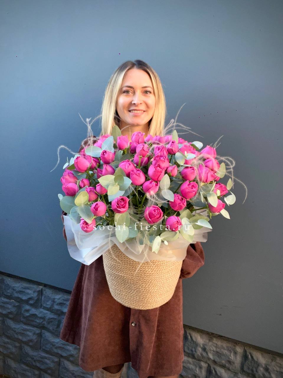 Мы работаем только со свежими цветами — букеты радуют от 7 до 14 дней и дольше при правильном уходе.