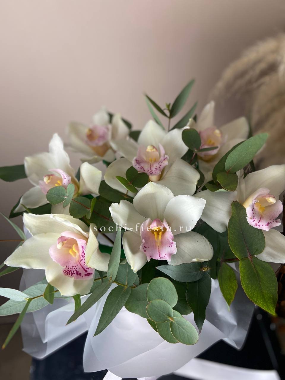 орхидея цимбидиум, эвкалипт, цилиндр, оазис.