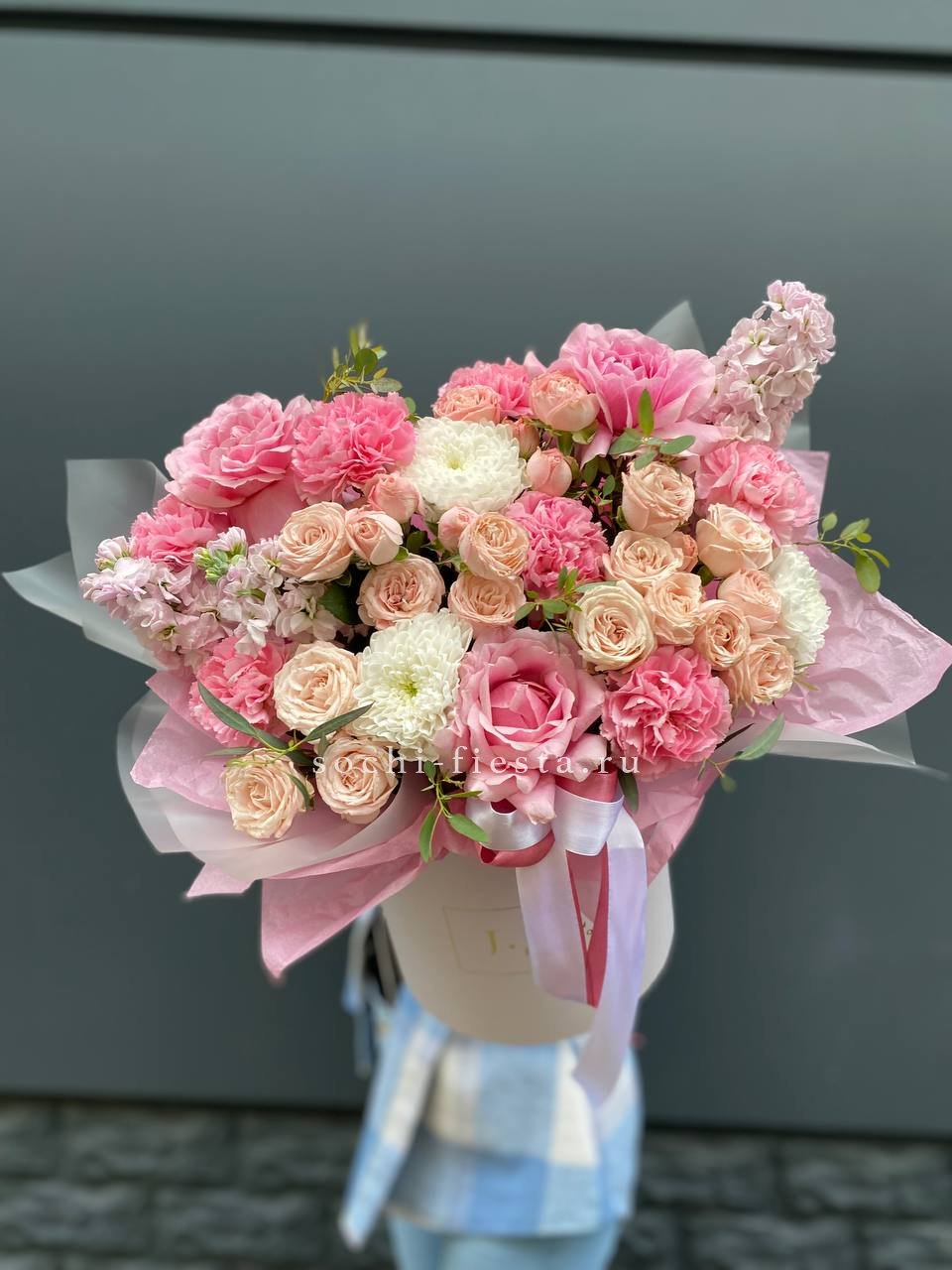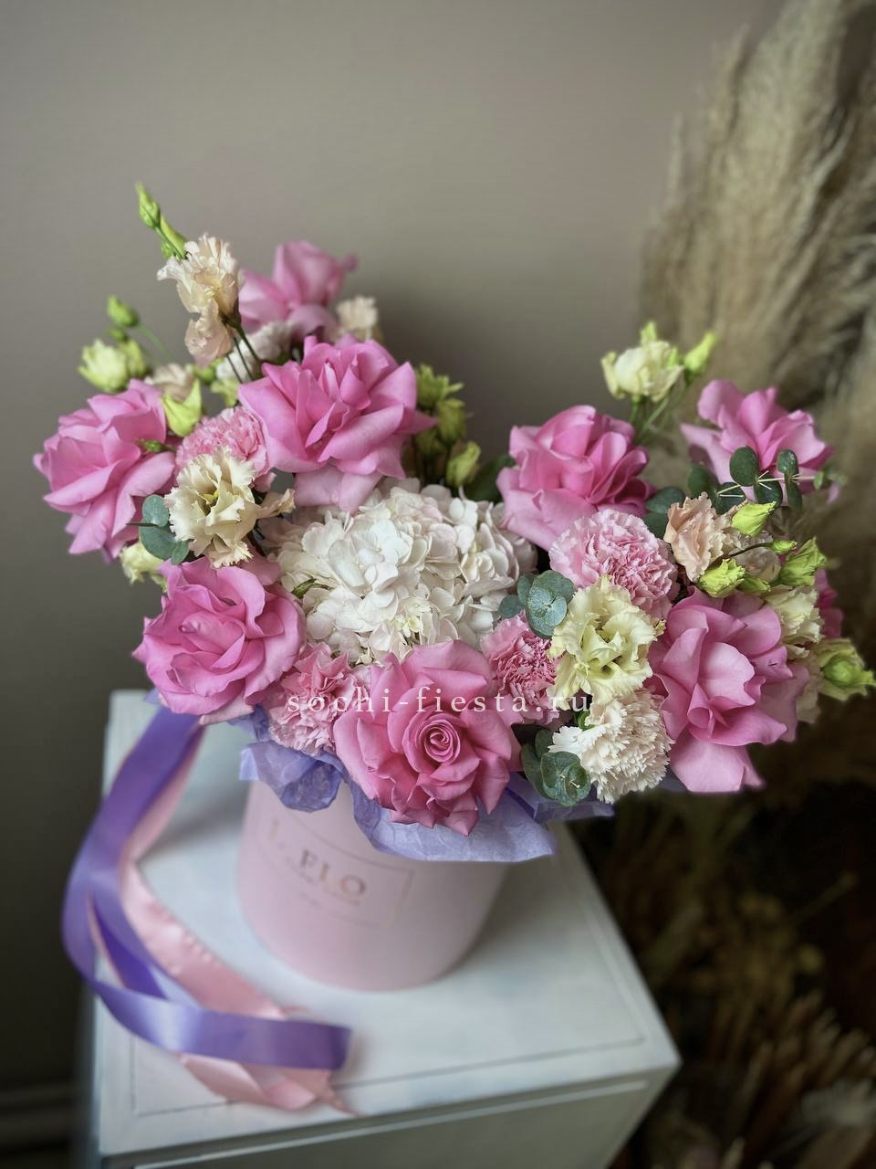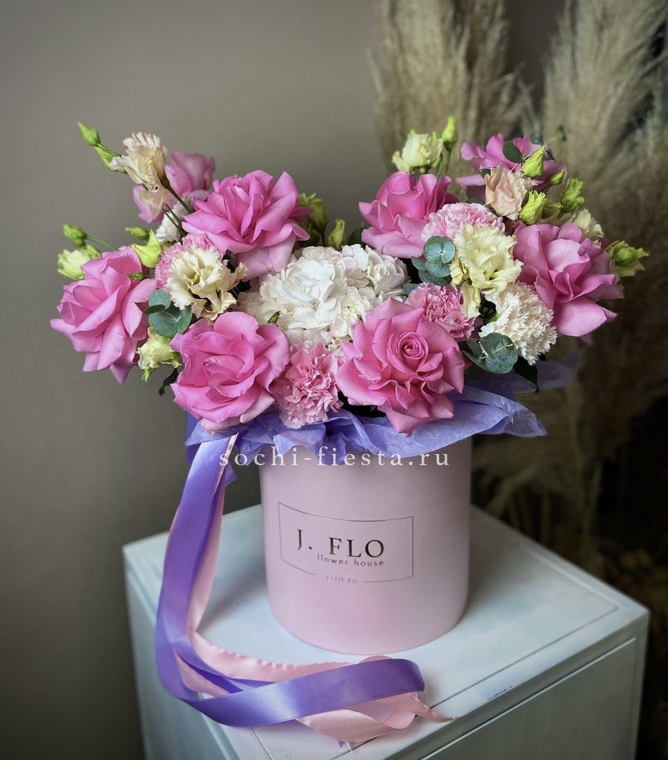 гортензия, диантус, бомбастик, мисти баблс, розы, антиринум, эустома, бокс гигант.