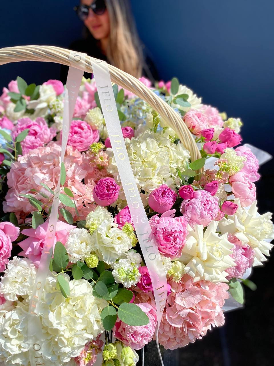 Цветочная корзина из пионов и пионовидных роз "Перфекте"