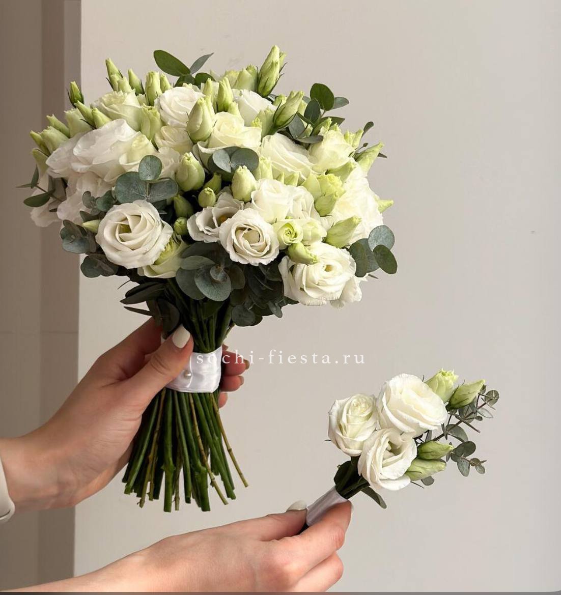 белые диантусы - 21 шт.,эвкалипт лента.
