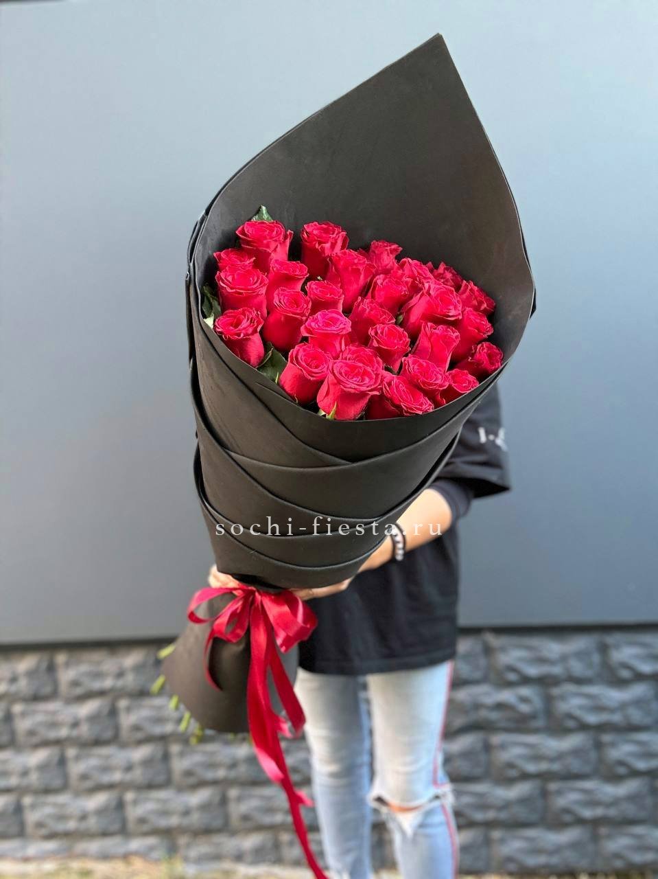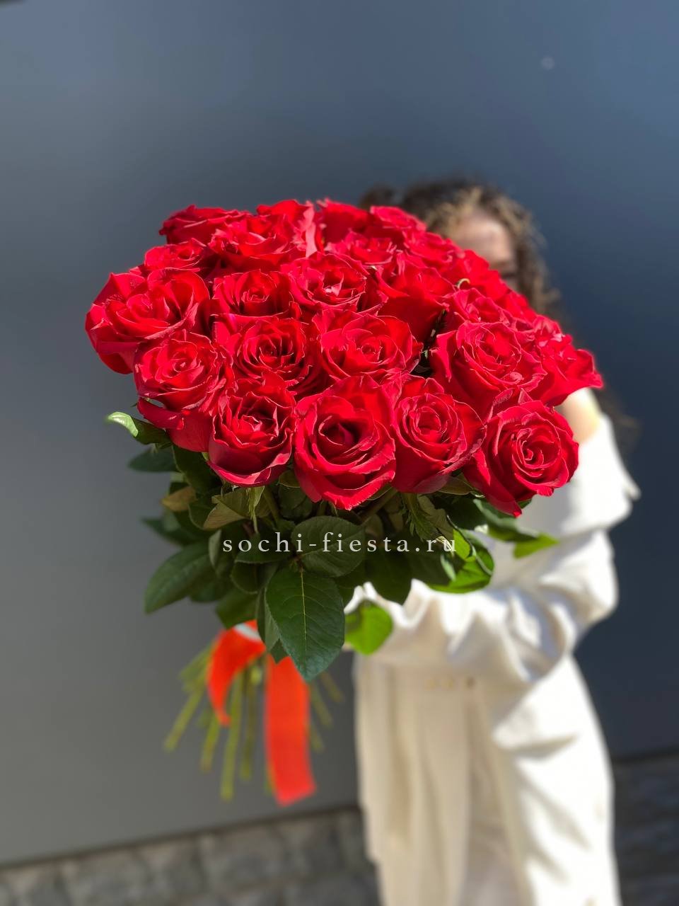 роза импортная высокая - 101 шт., лента, упаковка.