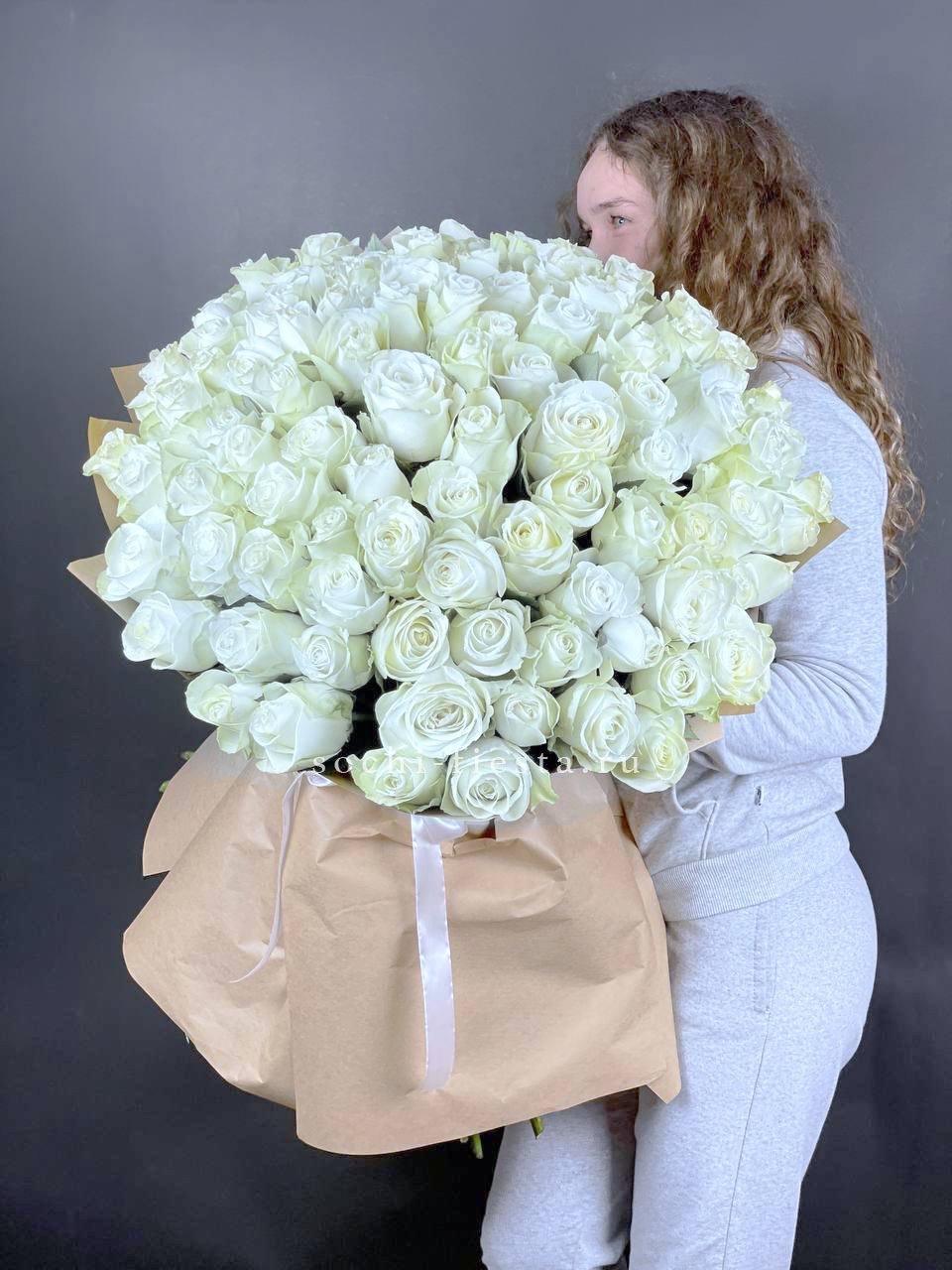 букет из 101 белой розы.