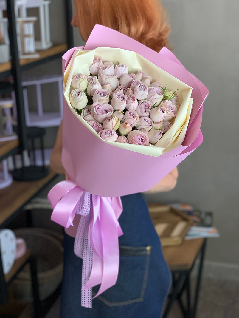 кустовые розы silver - количество на выбор, лента, авторская упаковка.