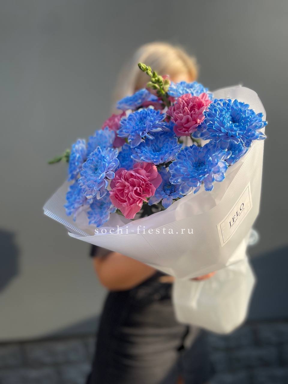 Хризантемы держат форму долго и остаются свежими даже в жаркие дни. Диантус и антиринум добавляют сборной композиции разнообразия без лишних деталей. Воздушная упаковка сохраняет аккуратный вид.