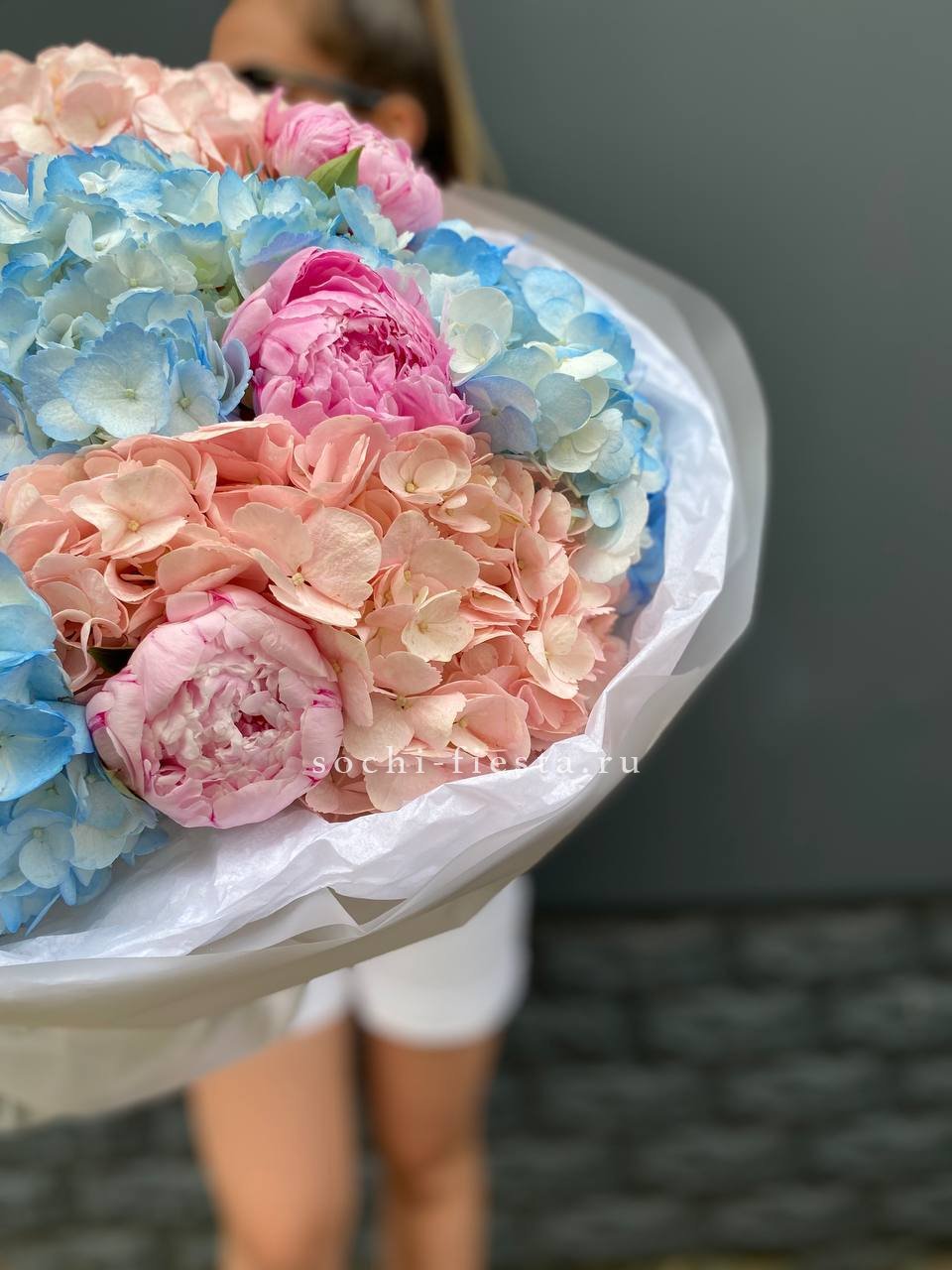 Дуобукет гортензии с пионами