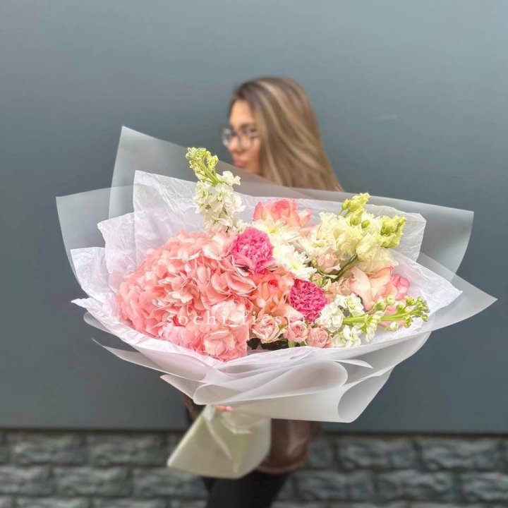 Самарская особенность работы с сезонами — длинный летний пик с плотным потоком выездных свадеб. Пионы в мае, гортензия в июне-июле, подсолнухи в июле-августе — каждый сорт работает в свой момент, и флорист чередует их в портфолио студии.