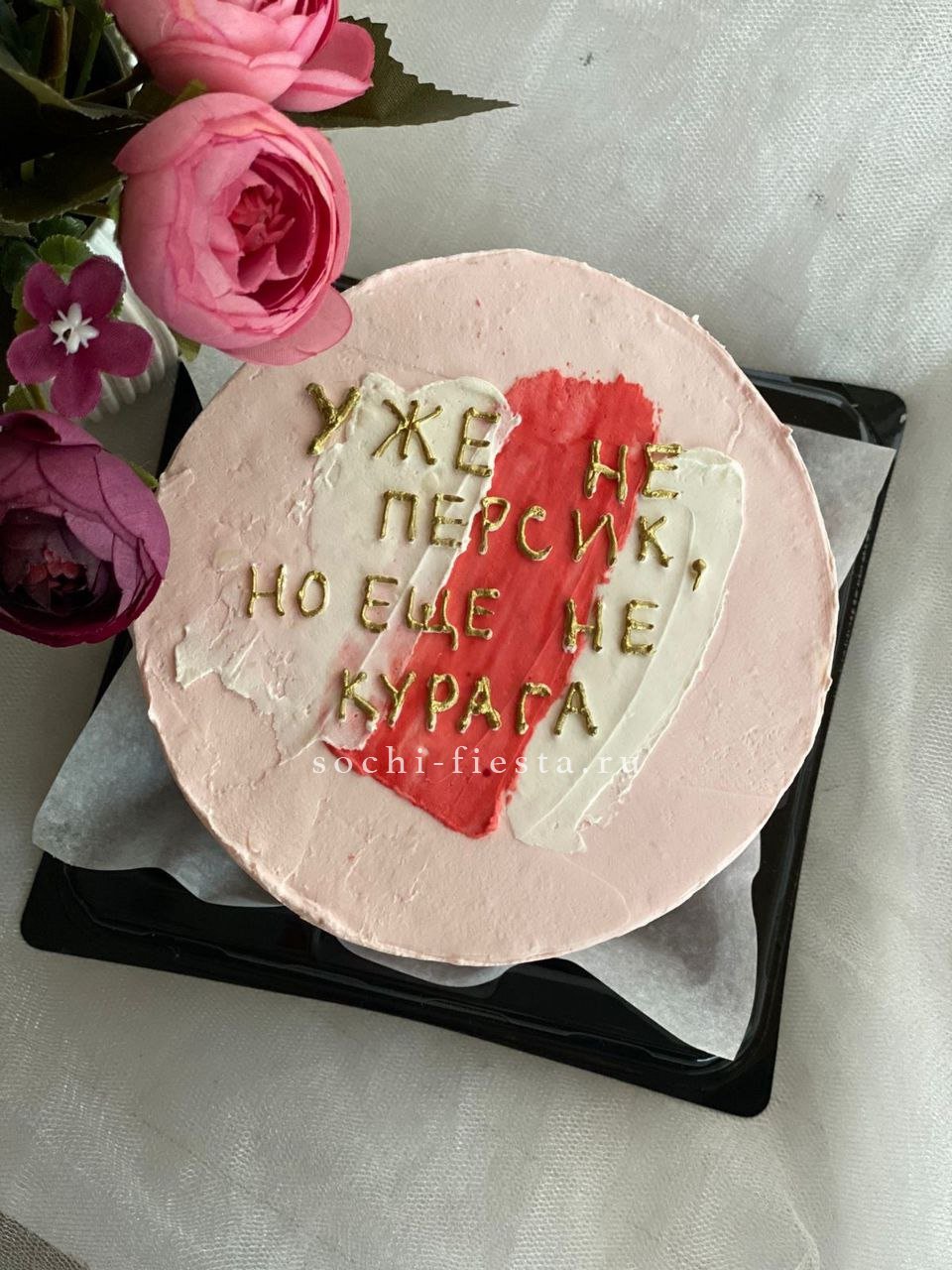 Ироничная надпись на кремовой поверхности задаёт тон всему десерту. Минималистичный дизайн и продуманная композиция создают лёгкое настроение без лишней торжественности.