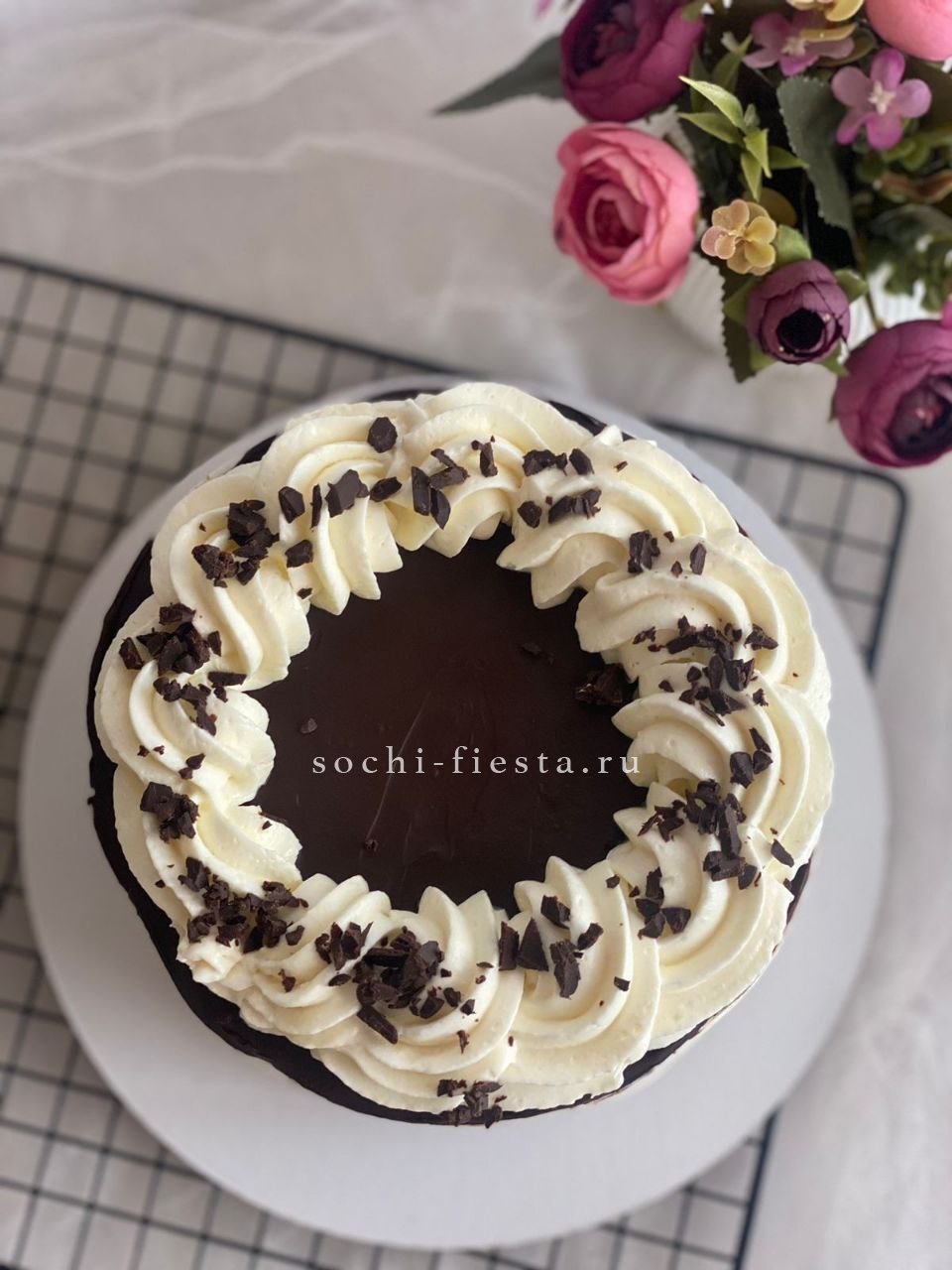 Кремовая фактура с мягкими волнами и надпись в центре создают романтичное настроение. Каждый элемент декора выполнен вручную с заботой о деталях.